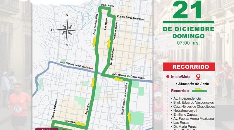 El titular de la corporación, Toribio López Sánchez informó que el dispositivo contempla cierres parciales y control de la circulación en las vialidades que conforman la ruta, cuyo punto de salida y meta será la Alameda de León.