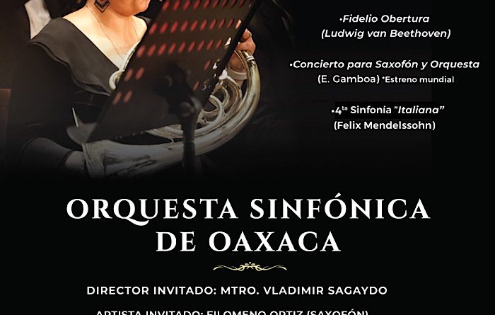 La Secretaría de las Culturas y Artes de Oaxaca (Seculta) invita al público en general a disfrutar de este encuentro musical en el que participará el destacado saxofonista oaxaqueño Filomeno Ortiz, quien interpretará el “Concierto para Saxofón y Orquesta” del compositor Eduardo Gamboa, cuyo estreno mundial conjuga innovación musical y virtuosismo técnico.