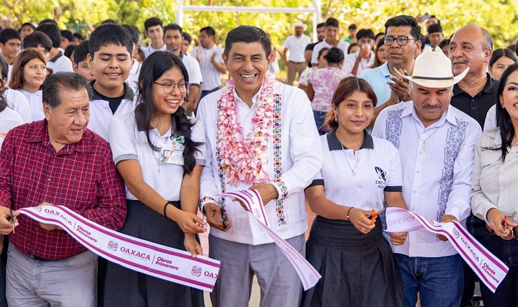 Con obras de infraestructura educativa, mejora Gobierno del Bienestar aprendizaje de las adolescencias en Santa María Tonameca