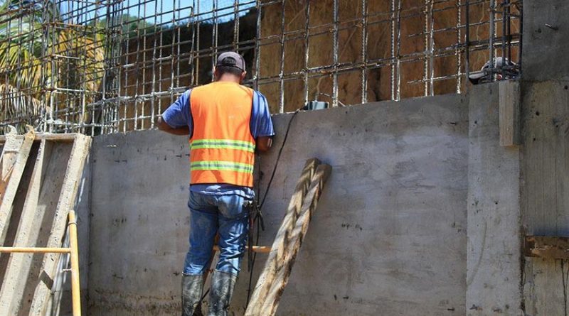 El titular de la dependencia, Carlos Vichido Hernández destacó que se edifican 47.85 metros lineales de muro de concreto por 5.70 de altura, para lo cual se han realizado trabajos de trazo, nivelación, excavación con maquinaria pesada, cimentación con base de zapata de concreto armado y peralte; se elabora con concreto armado, cadenas y castillos intermedios.