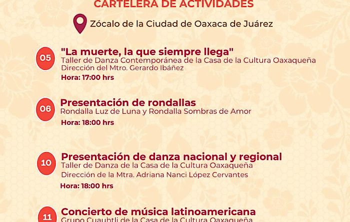 Del 5 al 14 de noviembre, ofrece la CCO actividades culturales en el Zócalo de la ciudad de Oaxaca