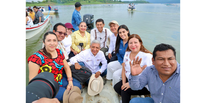 Para llegar a este lugar, rodeado por la presa Miguel Alemán, el Mandatario oaxaqueño viajó más de 1 hora en lancha, con el objetivo de hacer lo que nunca se hizo e impulsar proyectos que mejoren la conectividad y los servicios básicos a favor de la población.
