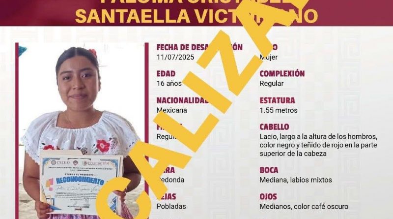 La joven, identificada como Paloma Cristabel Santaella Victoriano, había sido vista por última vez el pasado 11 de julio. Tras activarse de inmediato los protocolos de búsqueda, se desplegó un operativo en puntos estratégicos, lo que permitió ubicarla en un municipio vecino de Alotepec.