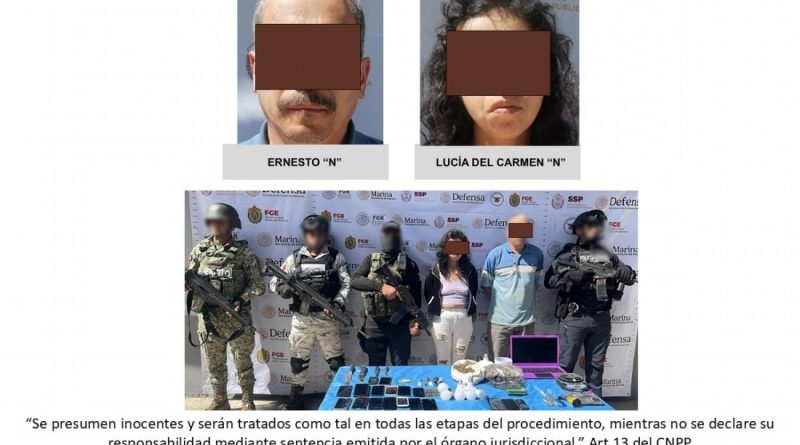 En el lugar fueron detenidos en flagrancia Ernesto “N” y Lucía del Carmen “N”, a quienes se les aseguraron diversas dosis de enervantes con características similares a las de la marihuana y el cristal.
