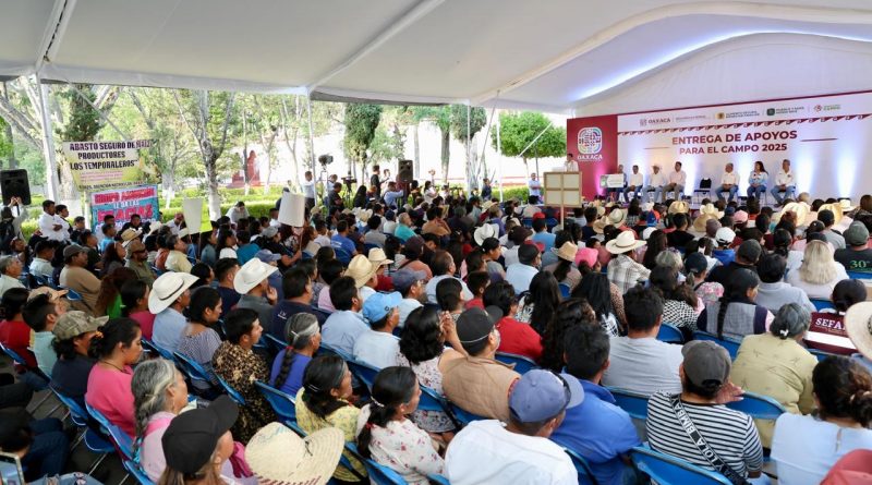 Asunción Nochixtlán, Oax. 15 de mayo de 2025.-El Gobernador Salomón Jara Cruz encabezó la Entrega de Apoyos para el Campo 2025 a personas productoras de la región Mixteca, con una inversión de 6.7 millones de pesos, como parte de la estrategia estatal para alcanzar la autosuficiencia en la producción de maíz y frijol.