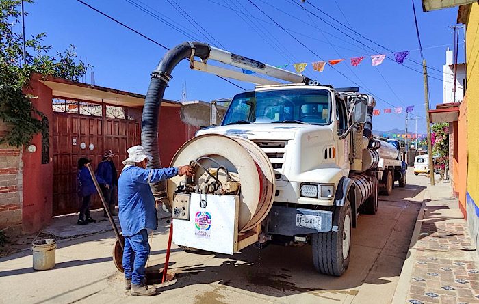 San Jerónimo Tlacochahuaya, Oax. 20 de noviembre de 2025.- La Comisión Estatal del Agua para el Bienestar (Ceabien) informó que, con equipo Vactor, se realizan trabajos de desazolve en el sistema de drenaje sanitario del municipio de San Jerónimo Tlacochahuaya.