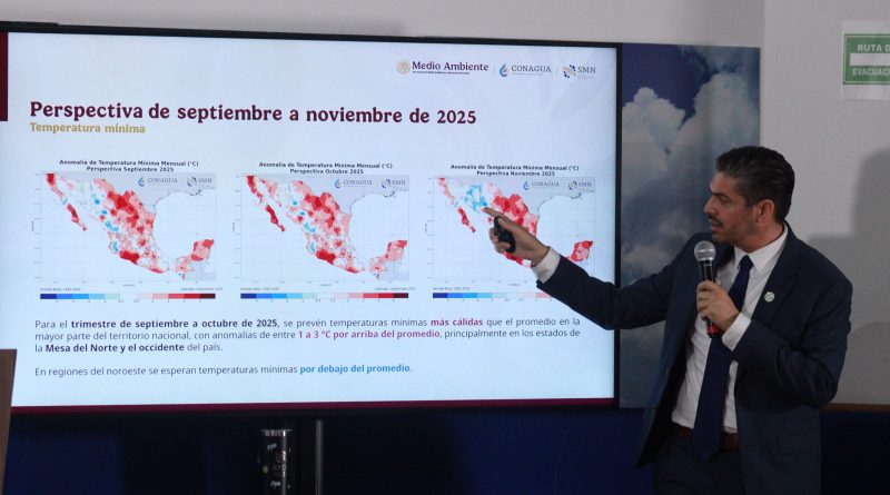 En cuanto a las temperaturas mínimas, el SMN puntualizó que, de septiembre a noviembre próximo, se prevén valores más cálidos que el promedio climatológico (1991-2020) en la mayor parte del país, con anomalía de 1 a 3 grados Celsius arriba del promedio, principalmente en la mesa del Norte y el occidente del país. En contraste, en las regiones de la Sierra Madre Occidental se esperan temperaturas mínimas por debajo del promedio.