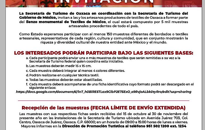 Invita Sectur Oaxaca a participar en el Lienzo Monumental de Textiles de México