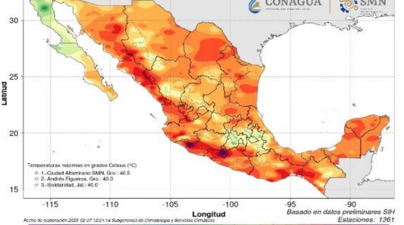 Destaca que, este jueves, se registraron temperaturas máximas que oscilaron entre los 38 y 39 grados en los municipios de Santa María Tonameca, Santa María Jalapa del Marqués y Santo Domingo Zanatepec.