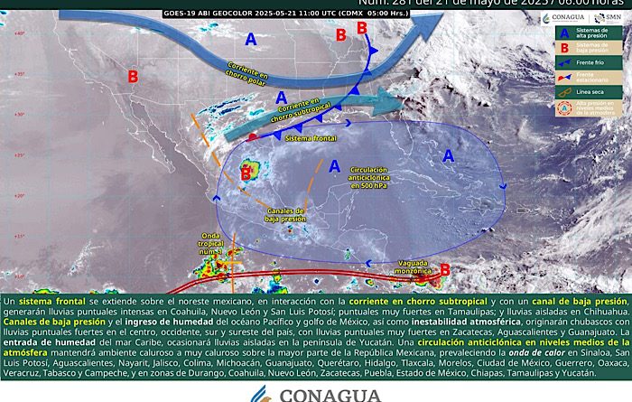 Oaxaca de Juárez, Oax. 21 de mayo de 2025.- La Coordinación Estatal de Protección Civil y Gestión de Riesgos (CEPCyGR) informa que, este miércoles, se mantiene la ola de calor con temperaturas extremas en el Istmo de Tehuantepec, Costa, Cuenca del Papaloapan y Valles Centrales; ya que continúa el dominio de un sistema anticiclónico.