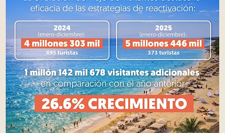 - 2025 (enero-diciembre): 5 millones 446 mil 373 turistas.