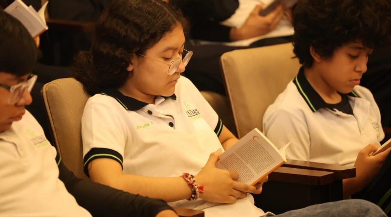 Oaxaca de Juárez, Oax. 1 de mayo de 2025.- Durante más de una hora, estudiantes de la secundaria Univas quedaron atrapados por los relatos de Edmundo Valadés, quien es uno de los máximos exponentes del cuento en México del siglo XX.