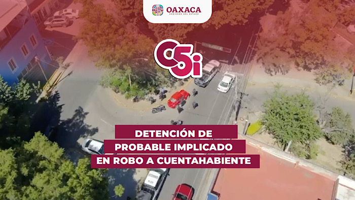 Oaxaca de Juárez, Oax. 30 de noviembre de 2025- El Centro de Control, Comando, Comunicación, Coordinación e Inteligencia (C5i) logró la identificación y detención de una persona presuntamente relacionada con un robo a cuentahabiente, al exterior de una sucursal bancaria de Plaza del Valle.