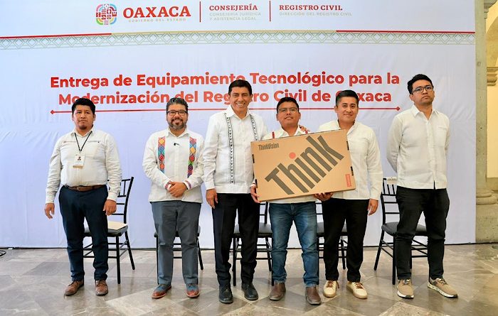Oaxaca de Juárez, Oax. 22 de diciembre de 2025.- Con una inversión superior a 11 millones de pesos, el Gobernador Salomón Jara Cruz entregó equipamiento tecnológico para la modernización de las 158 oficialías del Registro Civil de Oaxaca, lo que representa un paso firme hacia un servicio público más digno, eficiente y humano.