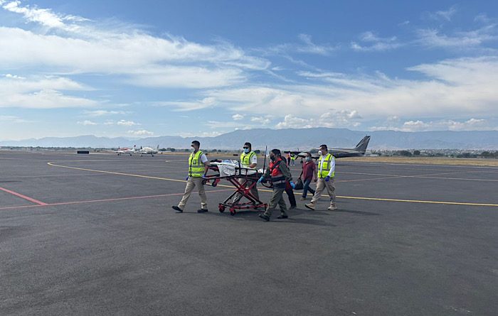 Para salvaguardar la salud de una mujer embarazada y de su bebé, Servicios de Salud de Oaxaca (SSO) en coordinación con la Dirección del Hangar del Gobierno del Estado, realizaron el traslado aéreo de una paciente de 39 años, desde el Hospital Básico Comunitario de San Jacinto Tlacotepec IMSS-Bienestar.