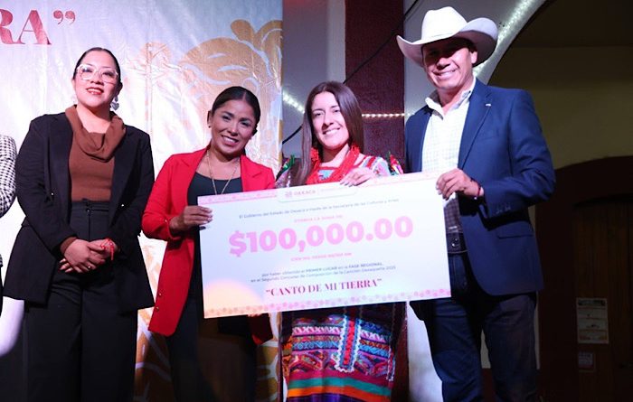 Además, en la Sierra Sur se reconoció a Fernanda Aragón Elorza con “Baila oaxaqueña”, Reyna Jarquín Borges con “Gracias Oaxaca” y Josué Nicolás Sánchez con “Mën Laa’”; y en Sierra de Juárez, Rafael Martínez Bautista con “Así es Oaxaca”, Fernando Inés Velasco con “¡Oh Oaxaca, vives en mí!” y Nelshon Cirilo Alberto con “Oaxaca linda”.