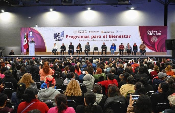 Reynosa, Tamaulipas, 24 de enero de 2026.– Desde Reynosa, Tamaulipas, la Presidenta de México, Claudia Sheinbaum Pardo, destacó que cuando se elimina la corrupción, alcanza para realizar más acciones. Por ello, anunció que en el estado se implementan los Programas para el Bienestar que benefician a 816 mil personas, se repavimentarán 407 kilómetros (km) de carreteras federales, se construirá el Bachillerato Tecnológico Plantel Reynosa y se crearán nuevos puentes, así como obras en materia de agua y el tramo Saltillo-Nuevo Laredo del Tren del Golfo de México.