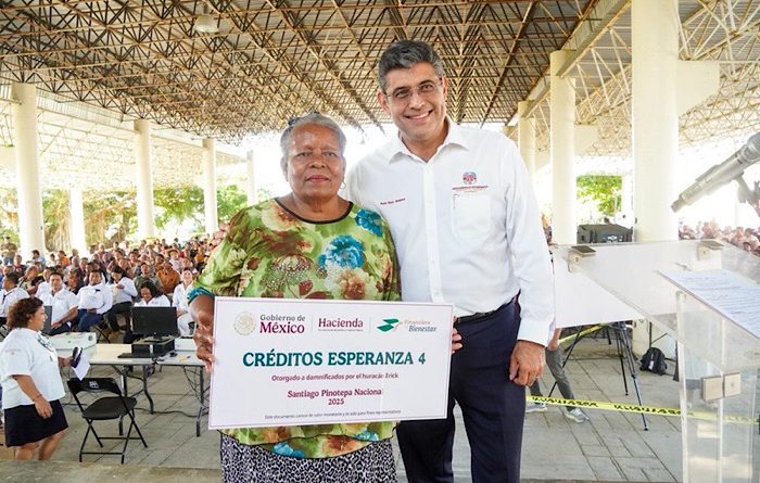 Santiago Pinotepa Nacional, Oax. 4 de diciembre de 2025.- El Gobierno de Oaxaca que encabeza Salomón Jara Cruz cumplió su compromiso con las familias afectadas por el huracán Erick, al gestionar y entregar 571 créditos Esperanza 4 otorgados por la Financiera para el Bienestar (Finabien) a pequeños negocios de Santiago Pinotepa Nacional.
