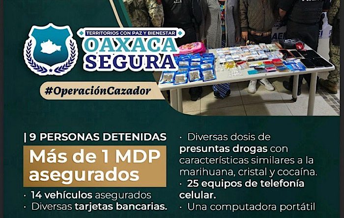 Oaxaca de Juárez, Oax. 15 de noviembre de 2025.- Como resultado de un operativo coordinado por el Gabinete de Seguridad, nueve personas fueron detenidas durante las diligencias de cateo realizadas en cinco domicilios del municipio de Santa Cruz Xoxocotlán.