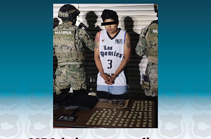 Oaxaca de Juárez, Oax. 30 de enero de 2026.- La Secretaría de Seguridad y Protección Ciudadana (SSPC) a través de la Policía Estatal detuvo a un masculino identificado como U.J.M.D.L.C., por presunta portación ilegal de equipo armamentístico y 100 dosis de drogas, en la localidad de San Juan Bautista La Raya, perteneciente al municipio de Santa Cruz Xoxocotlán.