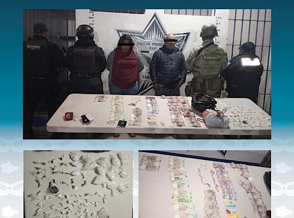 Dichos sujetos, que fueron identificados como E.C.H. y F.M.H., de 23 y 52 años respectivamente; trasladaban 36 dosis de una sustancia con características de cocaína, 19 de presunto cristal, una bolsa y 16 dosis de aparente heroína; así como aproximadamente 500 gramos de hierba seca con características de la marihuana y 5 mil 200 pesos en efectivo.