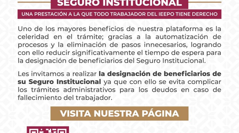 Oaxaca de Juárez, Oax. 9 de octubre de 2024.- El Instituto Estatal de Educación Pública de Oaxaca (IEEPO) implementó el Sistema Digital para la Designación del Consentimiento del Seguro de Vida Institucional para las personas trabajadoras de la institución.