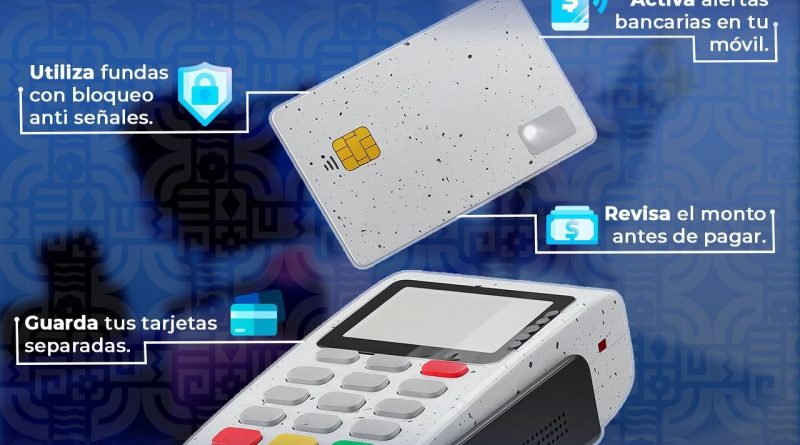 - Emplear carteras, fundas o portatarjetas con sistemas de bloqueo de señal, que limiten la lectura no autorizada de datos contenidos en tarjetas de crédito o débito.