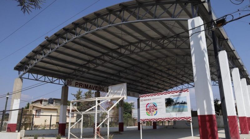 Oaxaca de Juárez, Oax., 30 de marzo de 2026.- Con el objetivo de brindar a la población espacios óptimos para actividades sociales, culturales y deportivas, el Gobierno del Estado, a través de la Secretaría de Infraestructuras y Comunicaciones (SIC), construyó el techado de la cancha de usos múltiples en la colonia La Joya, agencia municipal de Pueblo Nuevo, perteneciente al municipio de Oaxaca de Juárez.