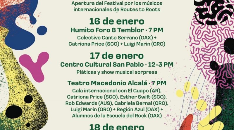 Oaxaca de Juárez, Oax. 15 de enero de 2026.-Con una programación gratuita que reúne a músicas y músicos locales, nacionales e internacionales, la ciudad capital será sede del Festival de Música Intercultural “Rumbo Oaxaca”, que se llevará a cabo del 15 al 18 de enero.