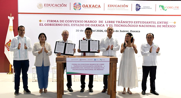 Firman Gobierno de Oaxaca y TecNM convenio para garantizar libre tránsito estudiantil