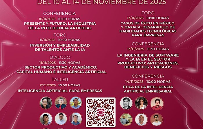 Oaxaca de Juárez, Oax. 22 de octubre de 2025.- El Consejo Oaxaqueño de Ciencia, Tecnología e Innovación (Cocitei) invita al seminario Inteligencia Artificial Empresarial para Oaxaca: presente y futuro, a realizarse del 10 al 14 de noviembre, próximo.