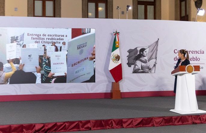 PRESIDENTA CLAUDIA SHEINBAUM ENCABEZA ENTREGA DE ESCRITURAS A 354 FAMILIAS REUBICADAS DEL CHIQUIHUITE