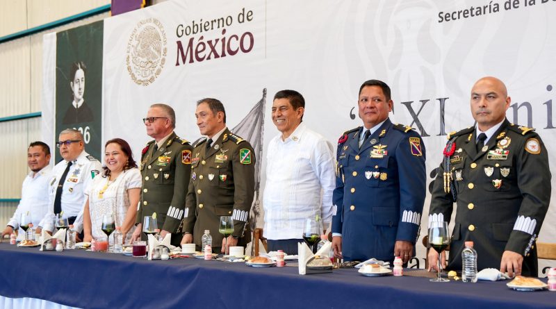 “Nos sentimos orgullosas y orgullosos todos los mexicanos de tener instituciones que desempeñan una labor y función muy especial para nuestro país”, afirmó en la Base Aérea Militar número 15 ubicada en San Juan Bautista la Raya, Santa Cruz Xoxocotlán.
