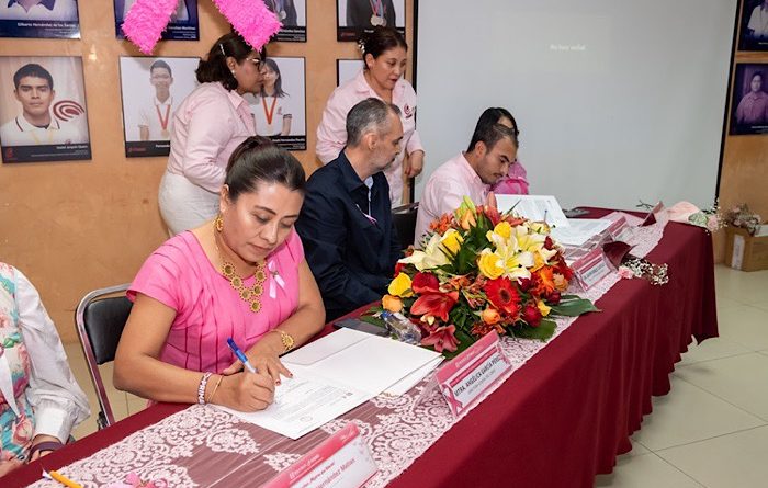 La firma se realizó en el marco de la conferencia “Mujeres que luchan, mujeres que vencen”, impartida por el médico cirujano oncológico Edgar Flores Baños, quien explicó los factores de riesgo y las manifestaciones del cáncer de mama, que es el segundo más común en México después del de pulmón.